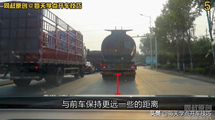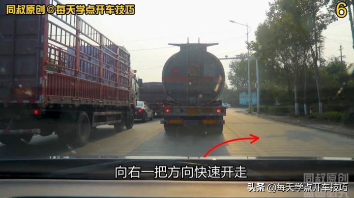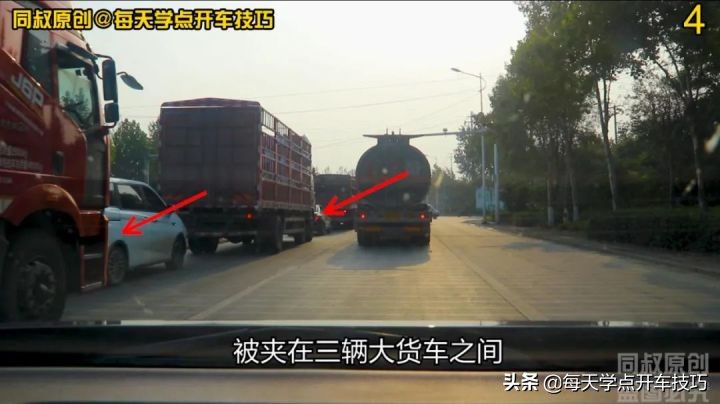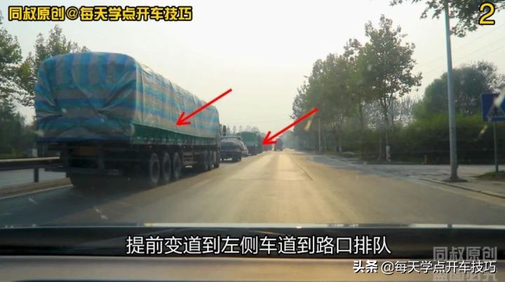 前期,我实景讲解过,在国道、省道路口排队等候信号灯的时候,直行的大货车通常都会在右侧车道行驶,为了避开与前后大货车同处一条车道,避免后车失控,把中间的小型车怼成夹心饼。