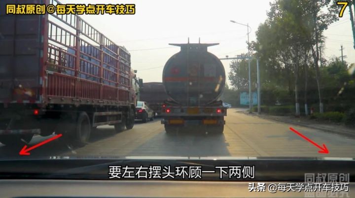 路口排队等候信号,前后大货车风险预判与紧急避险技巧