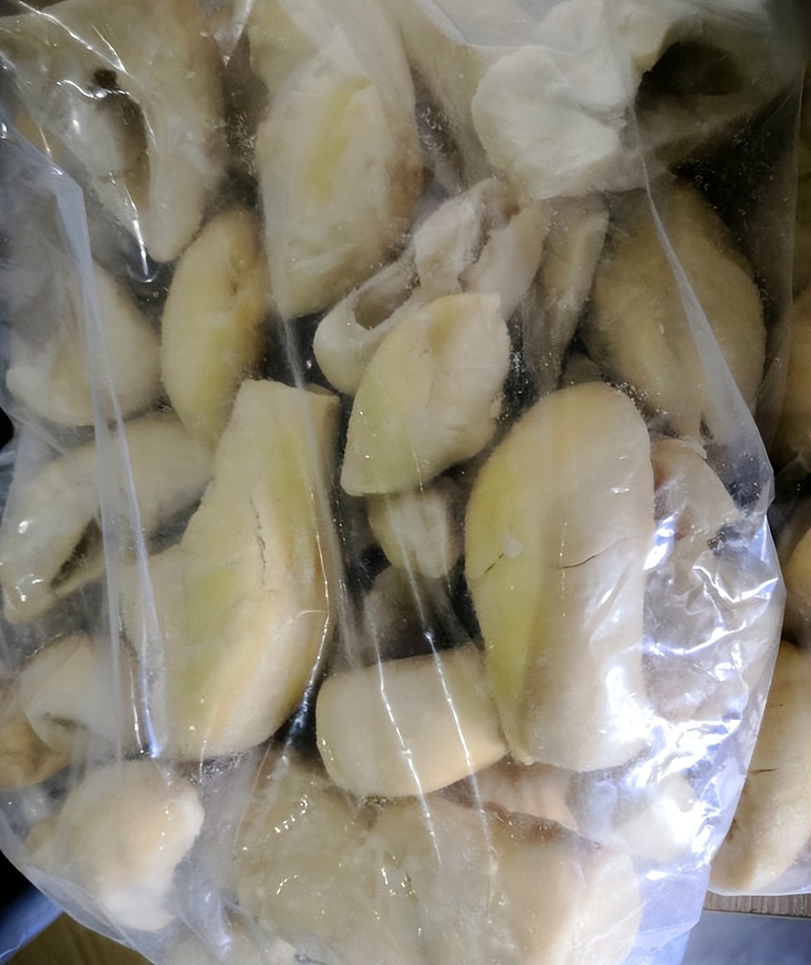 有消费者怀疑,冷冻榴莲果肉之所以相对便宜,其来源要么是国内卖不出的鲜果或是低质量的鲜果加工而来,毕竟有句老话,好果子谁拿啦加工啊!