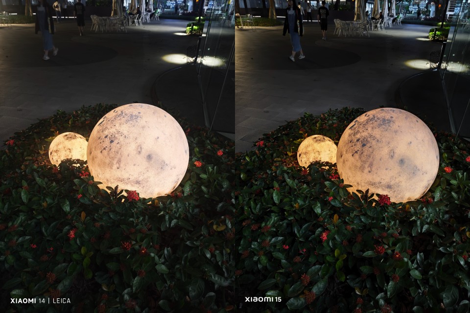 即使是在亮度较低的灯光装饰上,小米15的表现也依然碾压小米14。