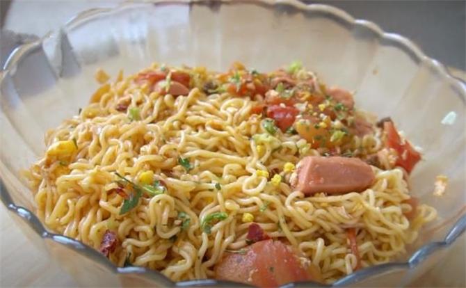 方便面、西红柿、素火腿肠、食用油、生抽、白醋