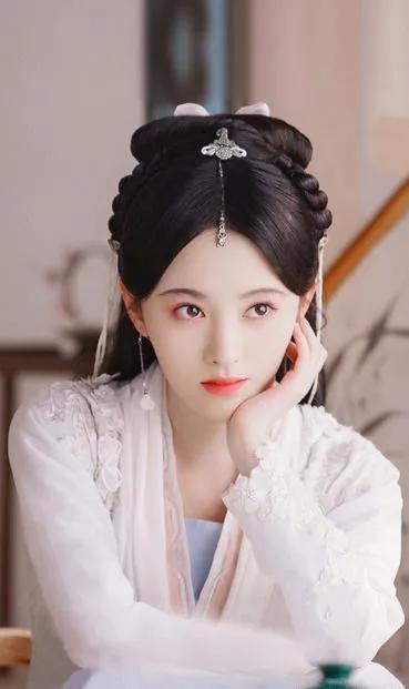 还有一部正在拍摄的剧《慕南枝》造型上有变化了,从路透来看,头发梳上去了,刘海也没有了,增加了额头饰品,服饰也与之前的不同,不过妆容还是变化不大!