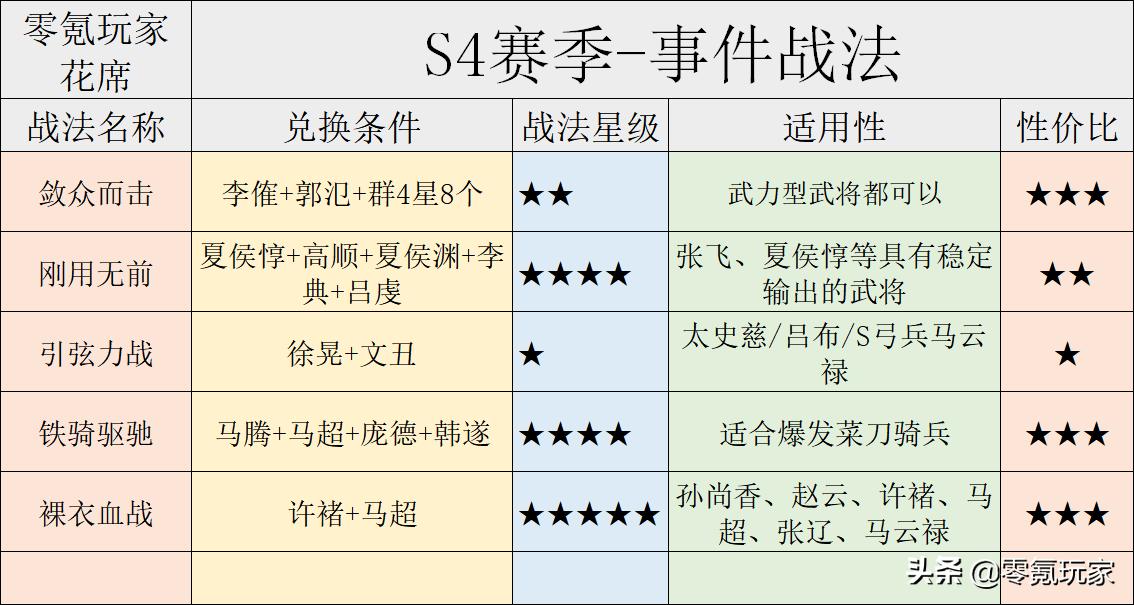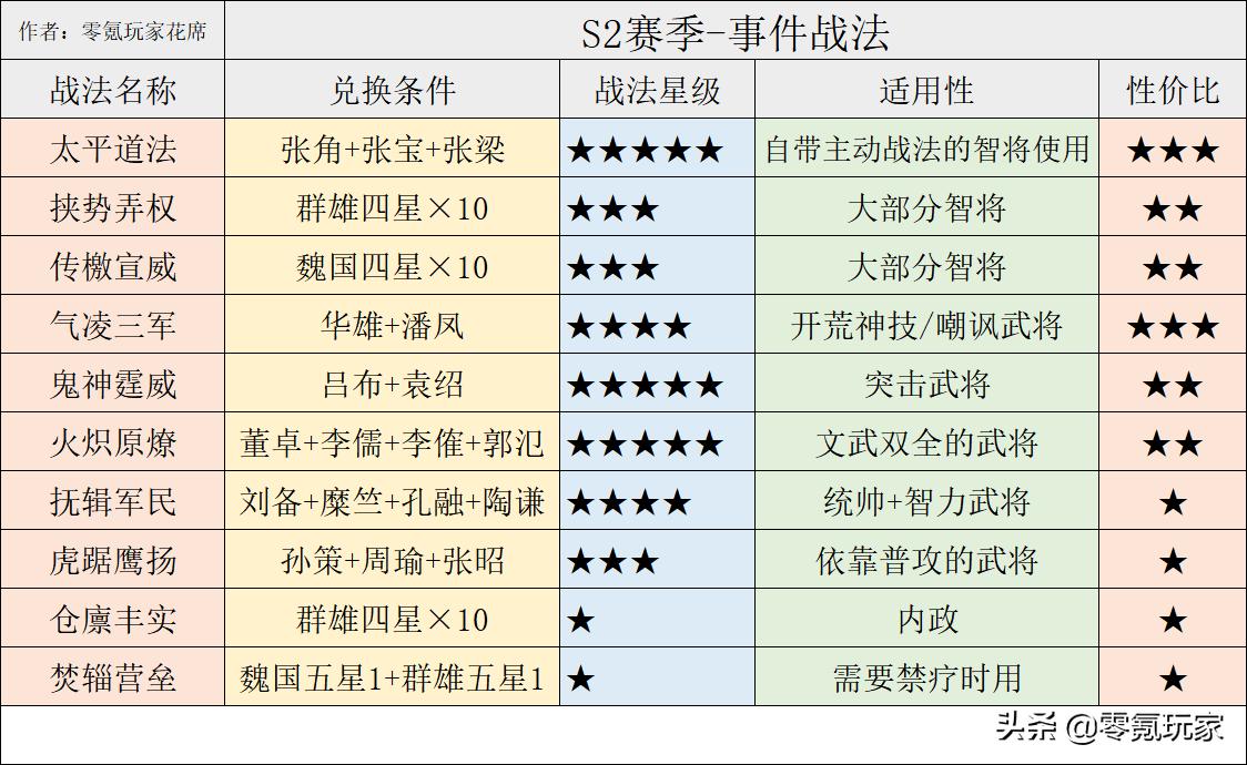S5和S6赛季一共4个事件战法,但是非常实用,不过兑换难度也是相当的高。