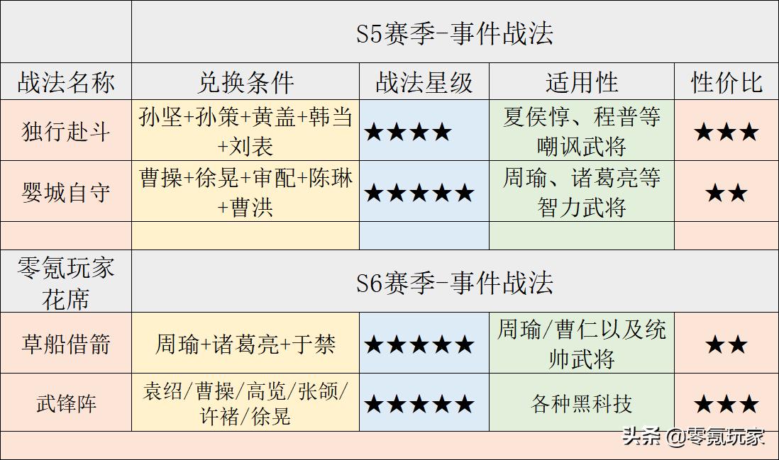 不知不觉游戏已经到第6赛季了,从2赛季开始每个赛季都会增加几个事件战法,老玩家都是摸着石头过河,每次出新事件战法都会后悔自己曾经拆错武将。