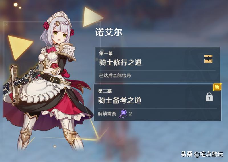 ▶女仆骑士不会受伤:达成【结局2,女仆骑士】,与诺艾尔一起听过《异国骑士璃月行记》可获得5原石。