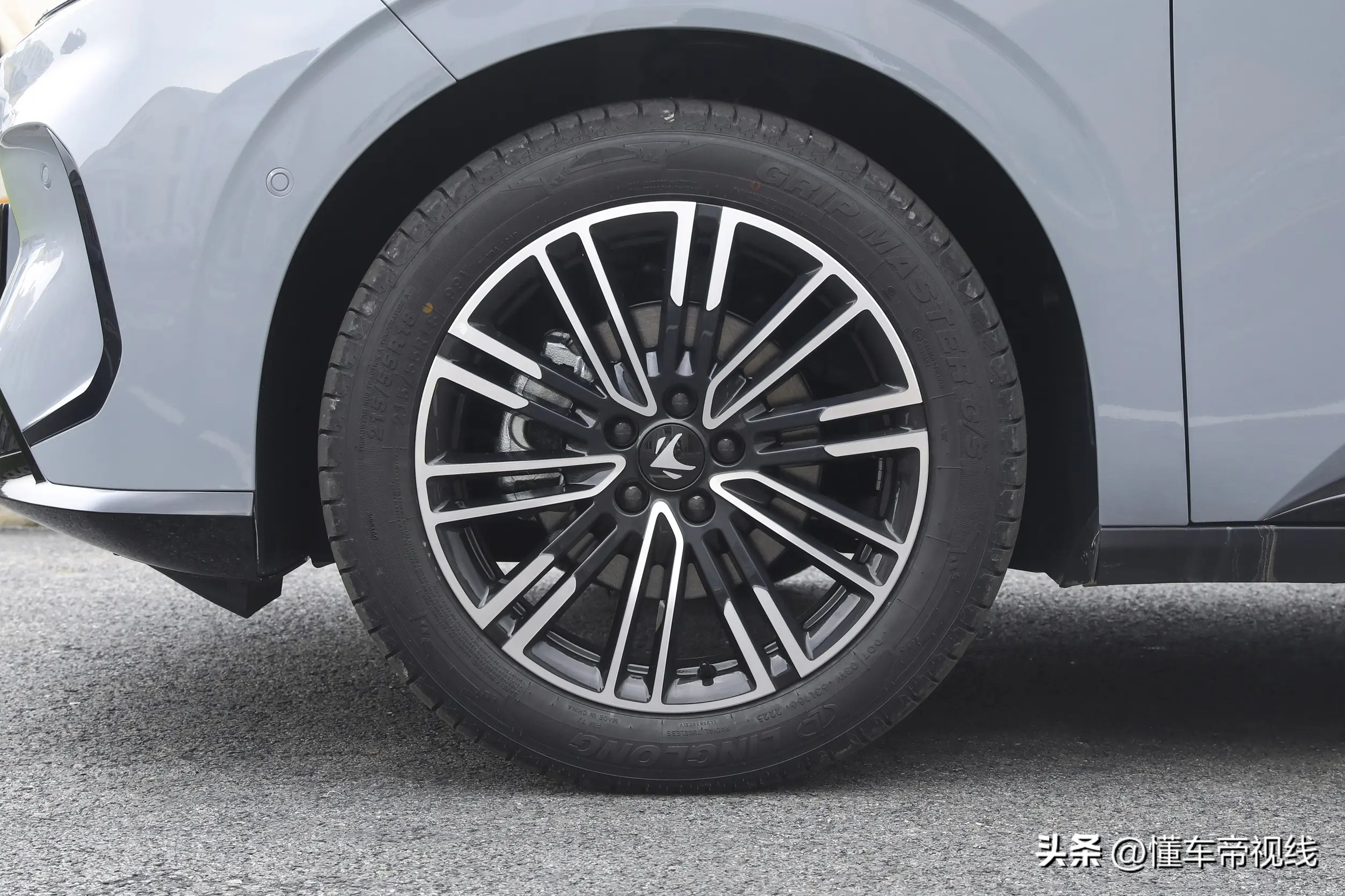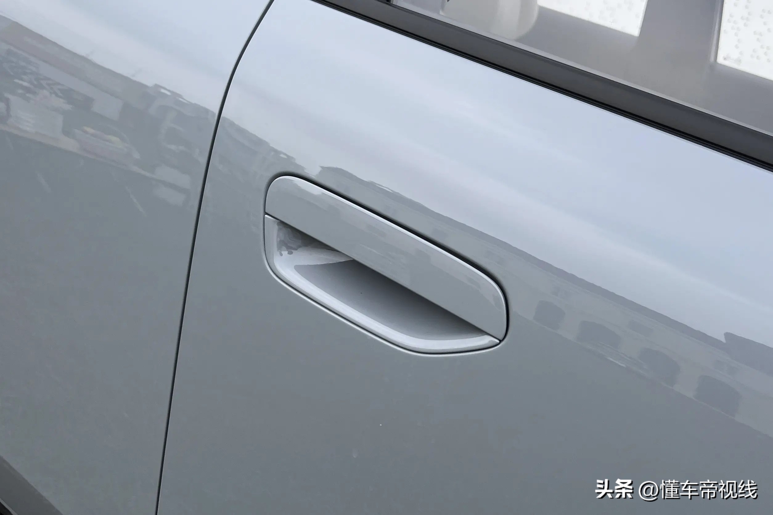 车身侧面,极狐T1带有上扬式腰线设计,提供黑色外后视镜壳、黑色车窗装饰条、半隐藏式门把手、车身同色车顶、黑色B柱、黑色侧裙等。此外,极狐T1快/慢充电口设在右前翼子板处,提供18英寸双色轮辋,轮胎规格215/55 R18。