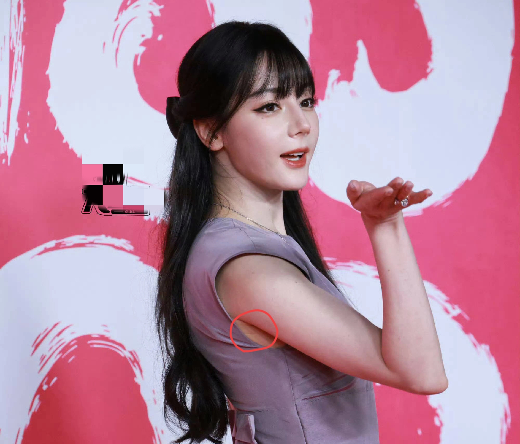 至于身材管理,就稍微有些差强人意了。不知道是不是最近这段时间热巴没有控制好身材,小臂大臂几乎一般粗,腋下管理似乎也没有做好。原厂亲自拍摄官图,腋下的赘肉很明显。肋巴骨附近的肉把礼服撑起来了。