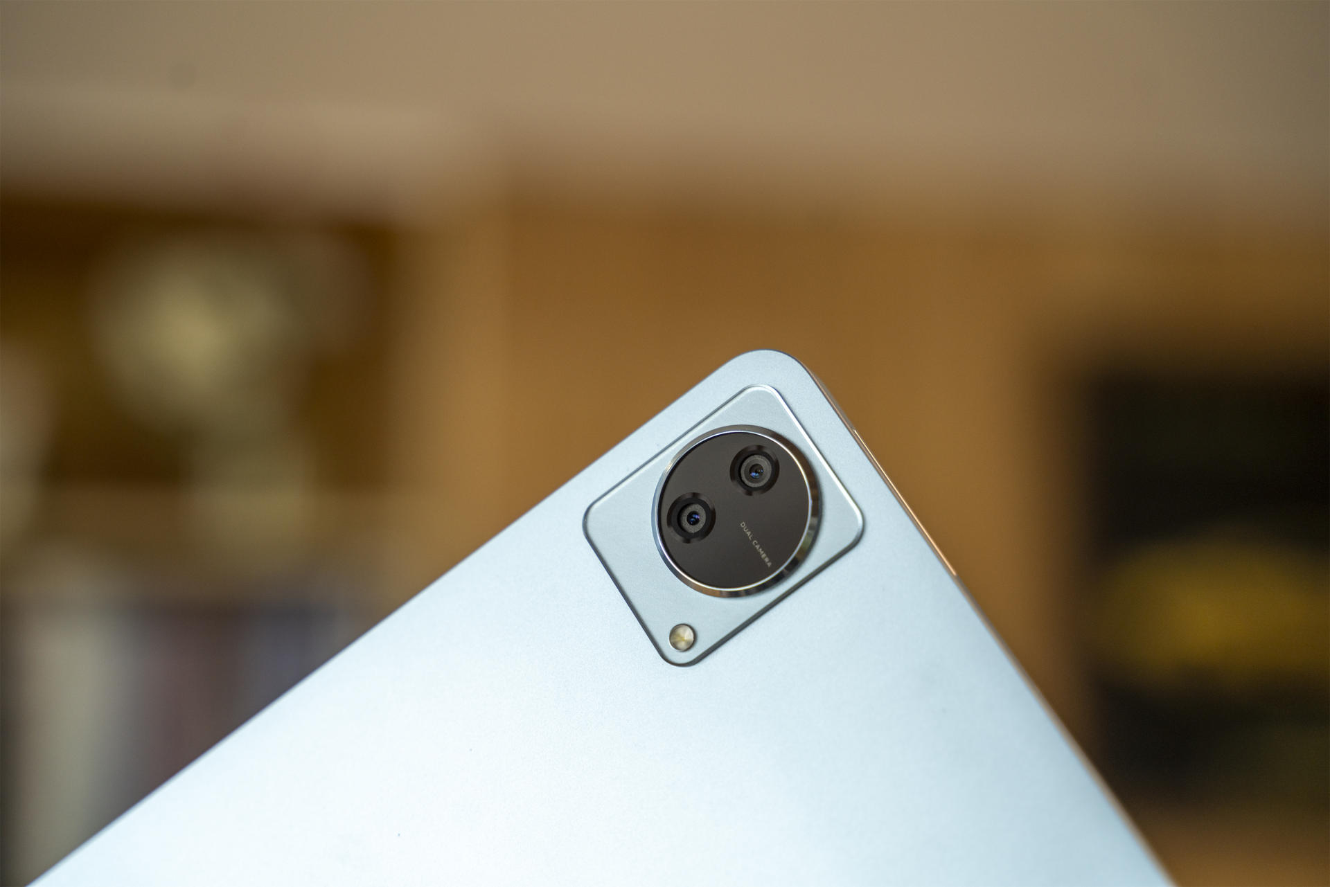 相机模组部分遵循着“天圆地方”设计理念,大小合适的圆形与矩形形成了不错的识别度,同时彼此没有明显的分割界线。配色方面,vivo Pad拥有深空灰和天蓝色,符合沉稳属性的同时也尽可能兼得青春活力气息。机身重量约为489克,握持手中显然很有分量感,但是搭配触控键盘使用的话,又可以完全解放双手,所以说不用过度关心vivo Pad的重量。