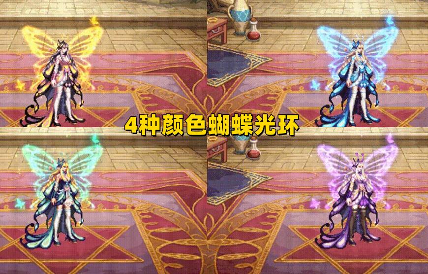 除了装扮以外,本次光环也是主打蝴蝶风格,特效为背后展示出一对蝴蝶翅膀,不过讲道理地说,这个翅膀未免有些寒酸了,这么小的翅膀,怎么支撑得起200斤的肥鯮呢?更别说还穿着一套蝴蝶时装的肥鯮呢。
