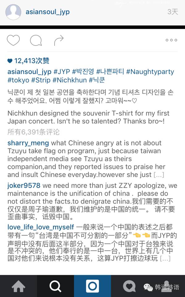 JYP表示会继续护着周子瑜,无法在中国与台湾之间做出选择!