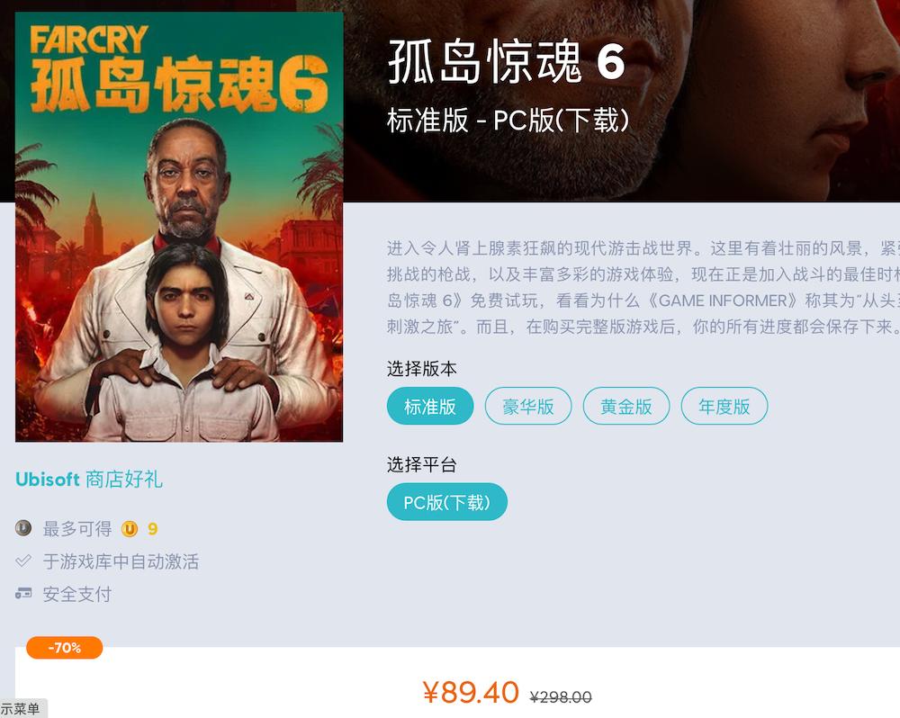 此外,即日起至 3 月 1 日,购买《孤岛惊魂 6》标准版、黄金版以及终极版可享最低 3 折优惠,购买《孤岛惊魂 6》年度游戏升级通行证及季票可享 4 折优惠,购买最新扩展内容《孤岛惊魂 6:异界迷失》可享 5 折优惠。