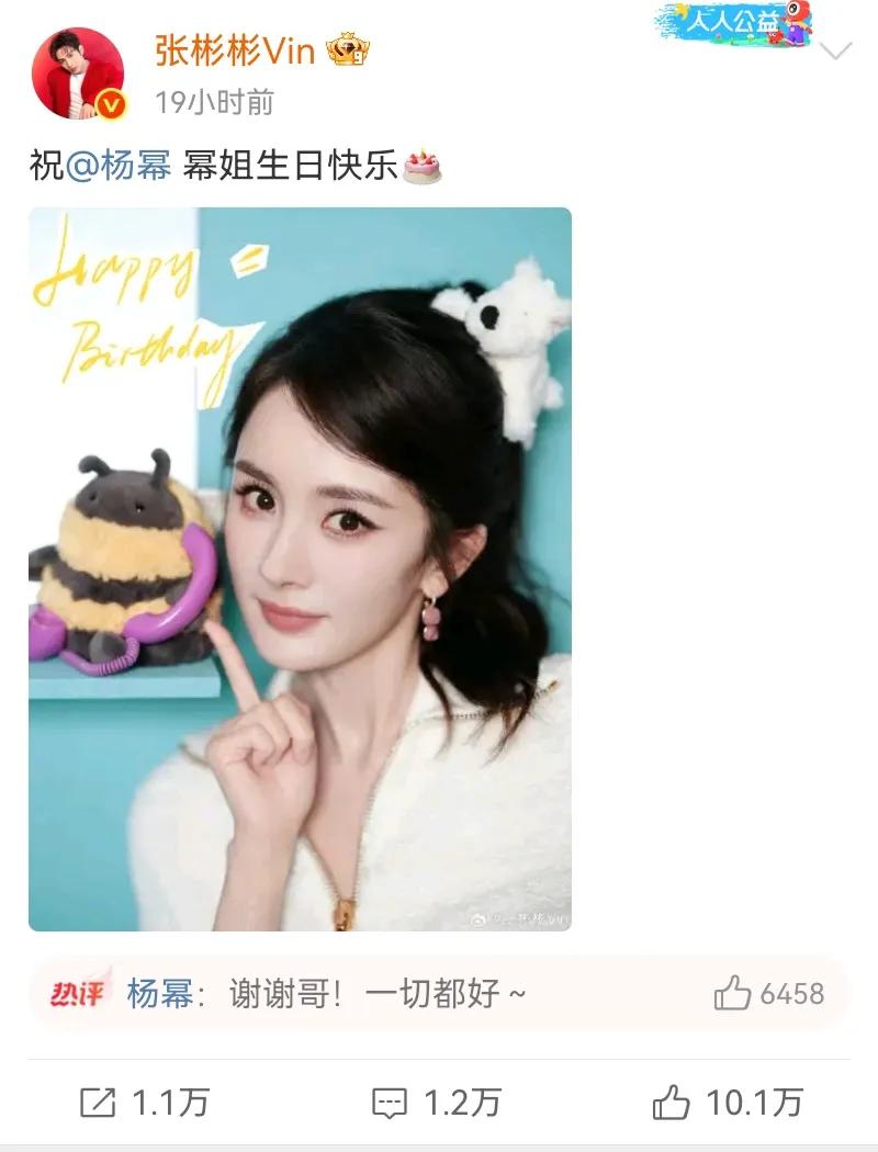 所以年年都会为杨幂送祝福,杨幂也在回复中问好。