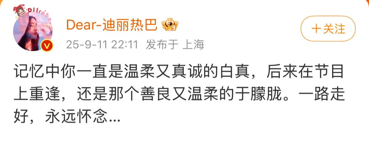 作为和于朦胧合作过的新疆老乡,热巴特地发文哀悼。