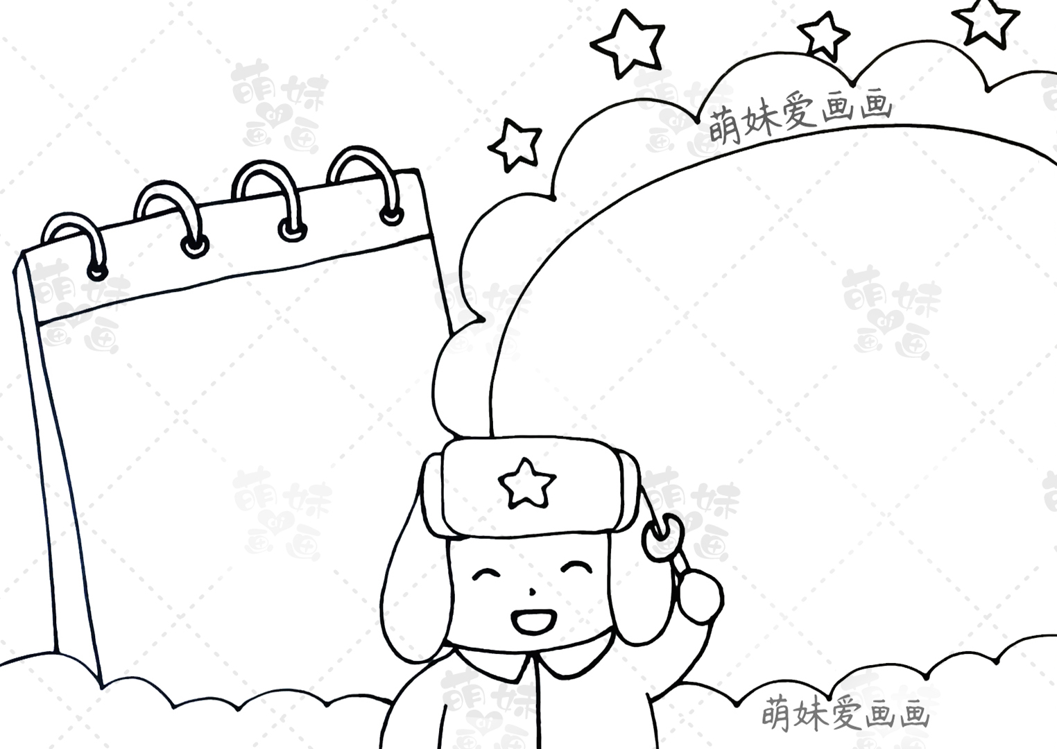 我们在画面的中央绘制出雷锋的形象,作为手抄报的主要元素,用简单的波浪线来作为文字边框,这样绘制的手抄报简单又好看。
