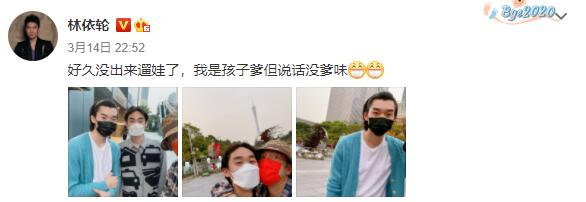 3月14日,林依轮在个人社交平台上晒出和大儿子林子濠以及二儿子林子轩的合照,并配文:“好久没出来遛娃了,我是孩子爹但说话没爹味。”