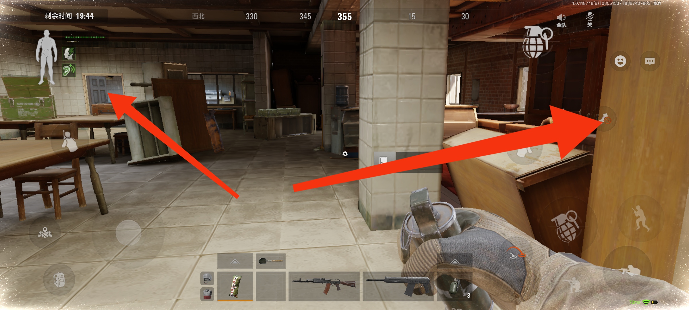当然也可以在这里扔雷,如果敌人在门口大房间里面,我们扔一个雷,一个房间的人都炸的到。只要造成敌人耳鸣效果,我们和队友一起冲进去对面很难招架得住。