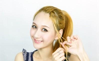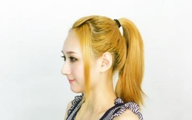 在前额(刘海区)的斜侧留一缕比较长的头发,把其它头发全部绑起来梳成利落的高马尾辫。