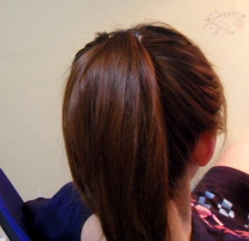 看到了吗碎发已经跑出来了 所以要用皮筋扎住哦