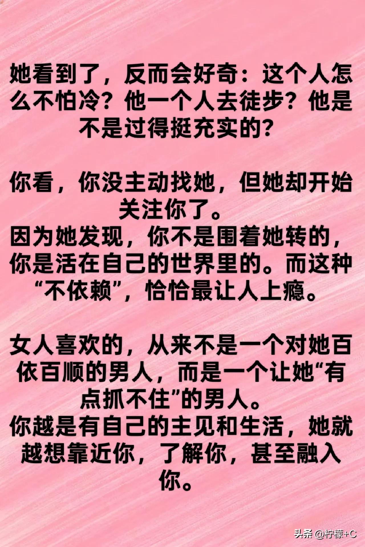 真正能让她上心、惦记、甚至主动靠近你的男人,往往不是最殷勤的那个,而是懂得“反向吸引”的那一个。征服一个女人,不靠频繁联系,也不靠卑微付出,真正高级的方式,只有三种,而且大多数男人都忽略了。