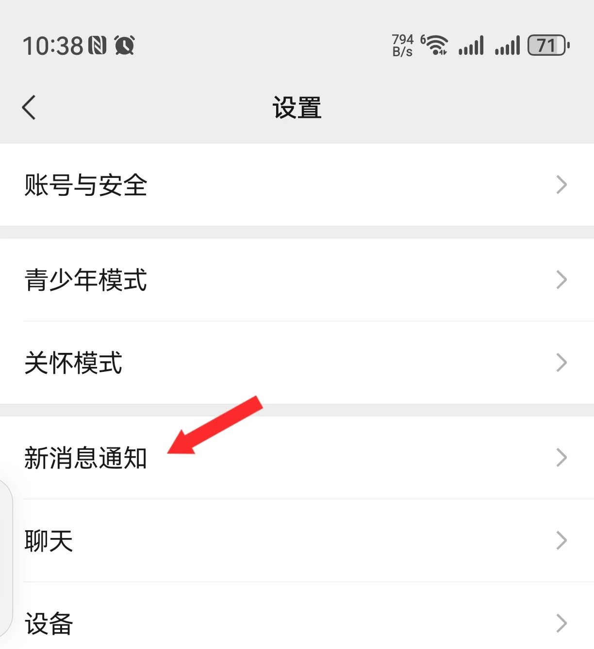打开微信之后点击右下角的【我】,然后进入设置,在这个页面找到【新消息通知】并点击进入。