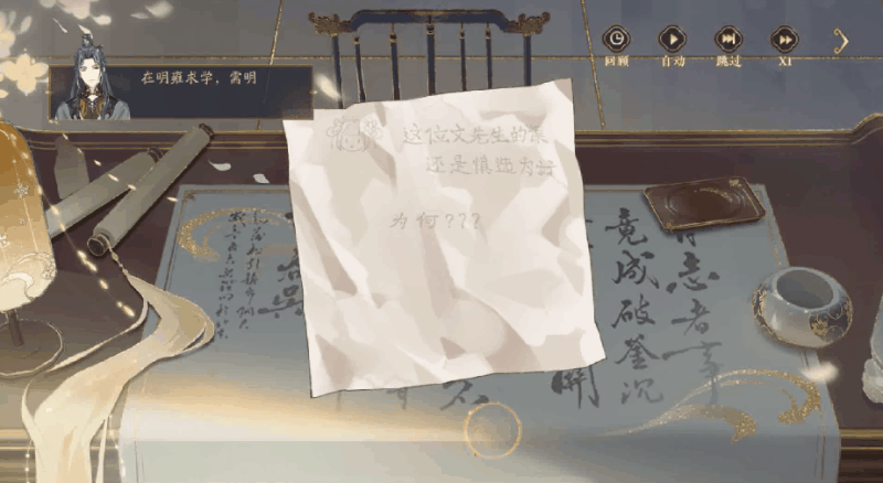 在学院里和名士们一起探案是游戏的主线内容,为了增添趣味性,主线剧情推进的过程中增加了不少互动内容。比如在为主角取名的时候,玩家也需要对玉牌进行点击互动,在体验剧情的同时也有更多参与感。