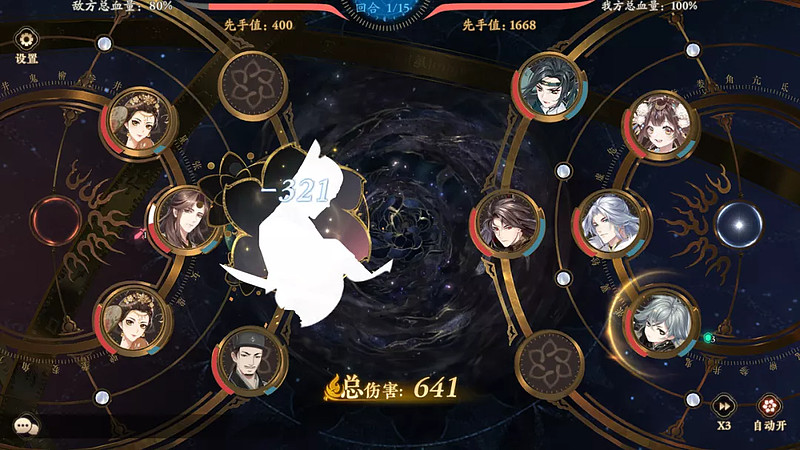 战斗方式是玩家提前在2行3列的阵列中排兵布阵。根据名士分为前排和后排,功能定位则分为单体、群体、治疗和辅助。在战斗过程中,卡牌优先自动攻击同列的前排,卡牌在攻击或被攻击的时候会积攒怒气,攒满后可以释放技能。