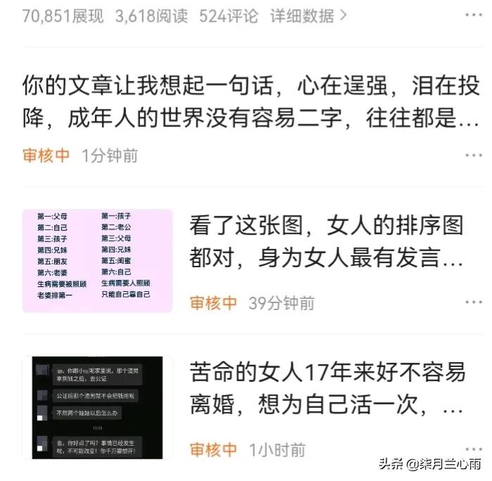 今天早上起得比较早,就把昨晚草稿箱里编辑的作品简单修改一下就发布了,发布之后就显示在审核中,然后我又开始发布第二条,依然显示审核中,然后我就去阅读粉丝的文章,用心的评论,结果又得到了平台给的小奖状,画面显示一键发布,平常这样的作品是不需要审核的。结果最后去后台一看依然在审核中,两个小时过去了,发的三个作品依然在审核中,如下图: