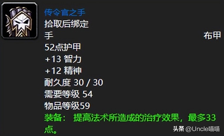 黑石深渊铁炉堡公主的传令官之手,虽然是一款布甲治疗手,但是几乎是前期无论板甲还是锁甲亦或者皮甲职业都通用的东西,主打的就是一个一流的水准,当然请别在意没有耐力这个小遗憾!