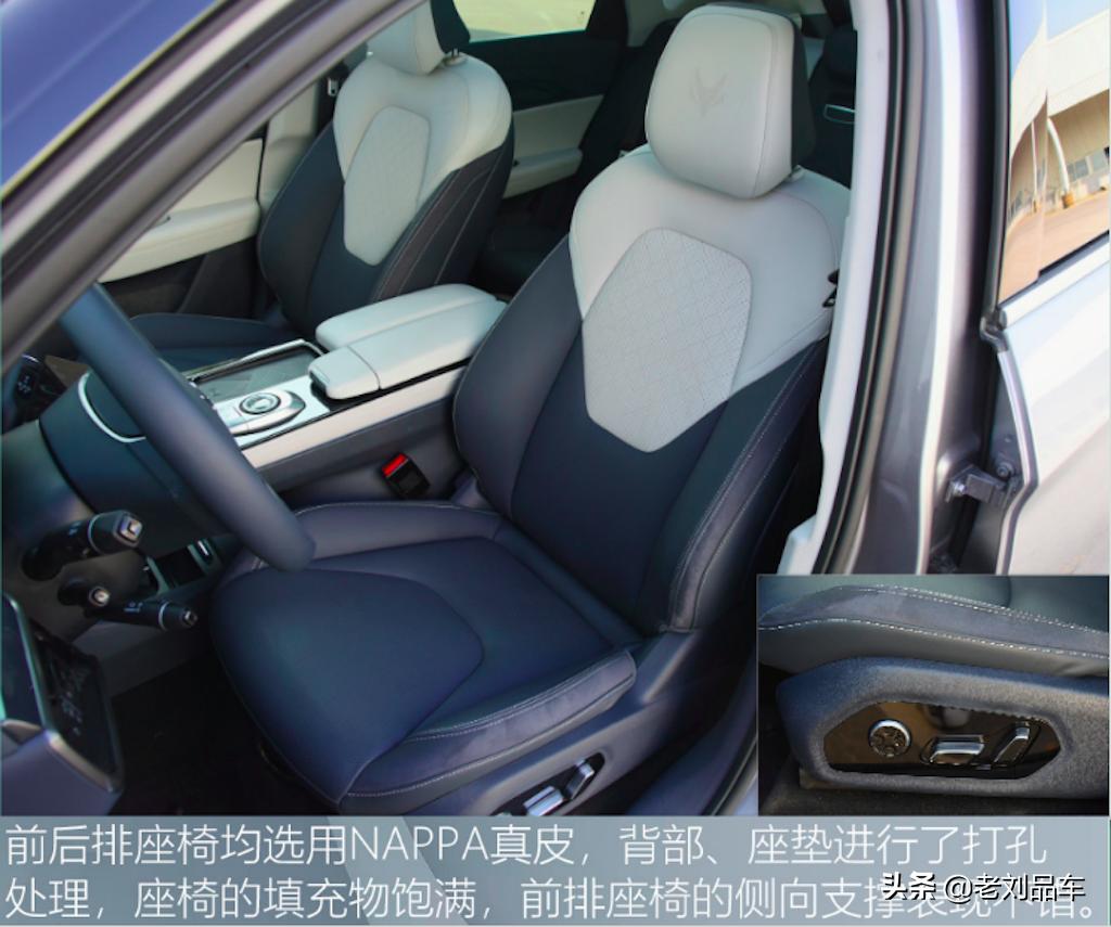 中控台上采用软性材料覆盖加同色的缝线,显得相当精致;双幅式多功能方向盘上设置了触控式按钮,操作很轻松;这台车没有挡把,而是像奔驰一样在方向盘后面做了个怀挡杆,新手有可能使用不太习惯。前排官方宣称是零重力座椅,乘坐起来无论坐垫还是靠背,都特别舒服、柔软,两侧都有翻毛皮包裹,并且支持电动调节。