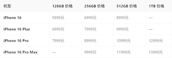 作为参考,以下为iPhone 16系列国行发布时的价格如下图: