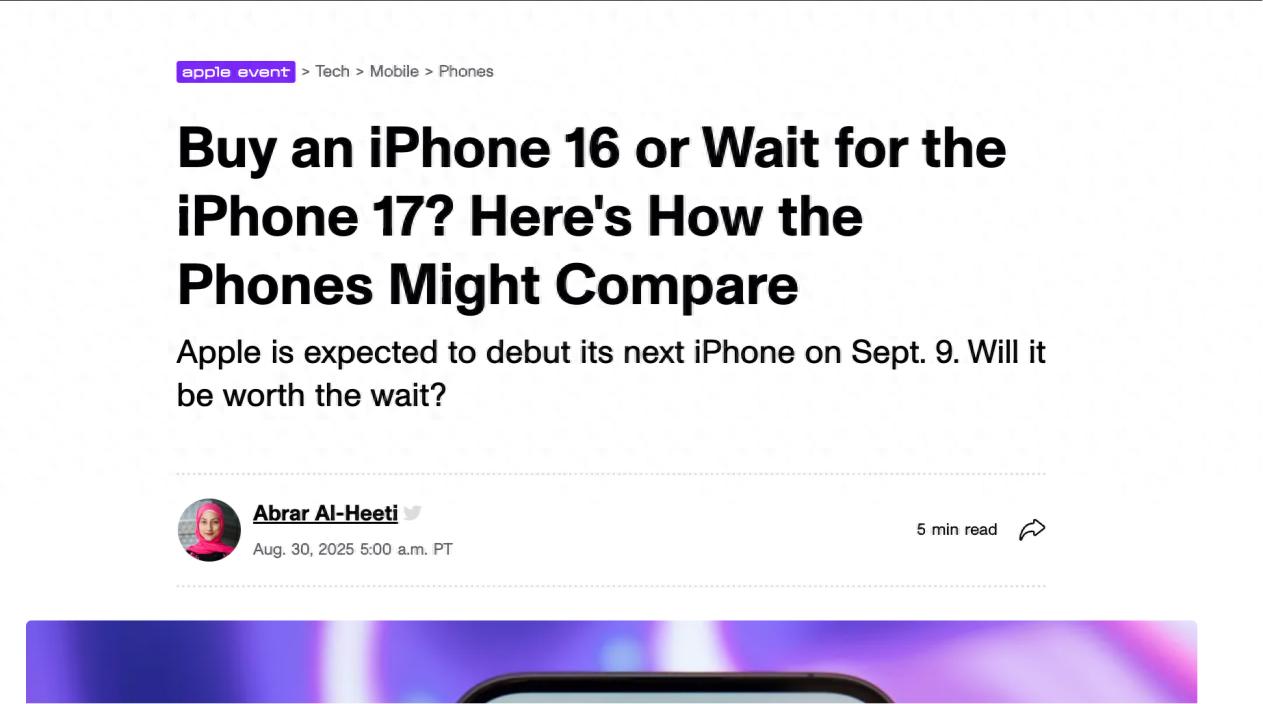 如果你急需换机,那我当然没法拦着你。但如果你能等到 9 月 9 日 iPhone 17 发布,不仅可以考虑这款令人期待的新机,还能以折扣价入手 iPhone 16(以往苹果通常会将旧款降价约 100 美元)。