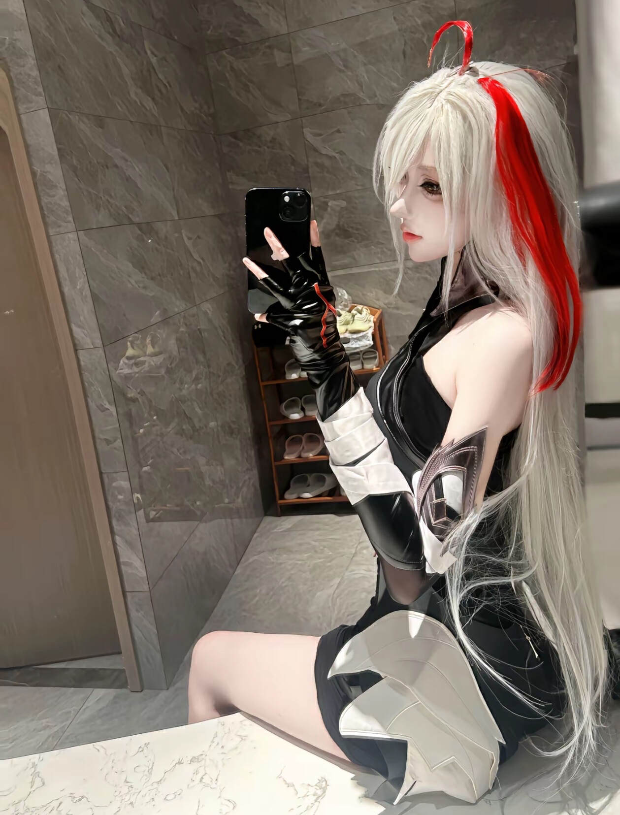 如下图所示,可以看到这位博主cos的影还原度确实非常高。博主身穿黑色紧身衣,一头银色的长发夹杂着一缕红发,造型和游戏中的影如出一辙,可以说是非常还原了。