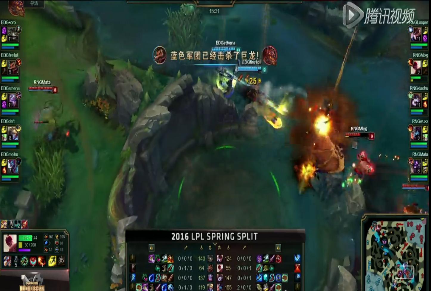 再之后爱萝莉就开启了“无限被开模式”,频繁用身体开启团战,但是爱萝莉也并不是毫无作为,正如解说所说,他每次被开之后都第一时间把技能交完。而在之后RNG通过积累起来的优势通过一波大龙团战取得了胜利。
