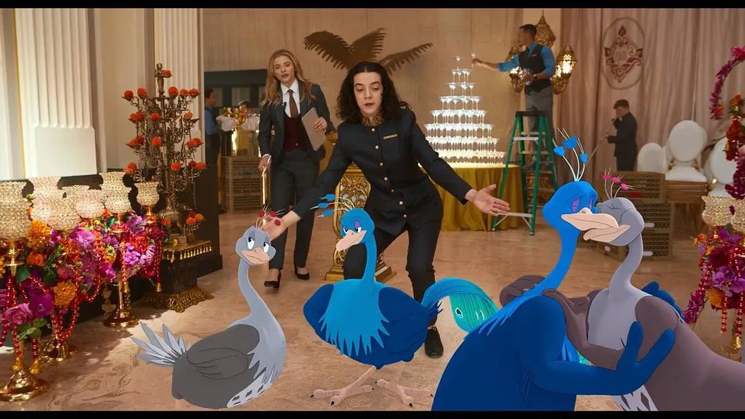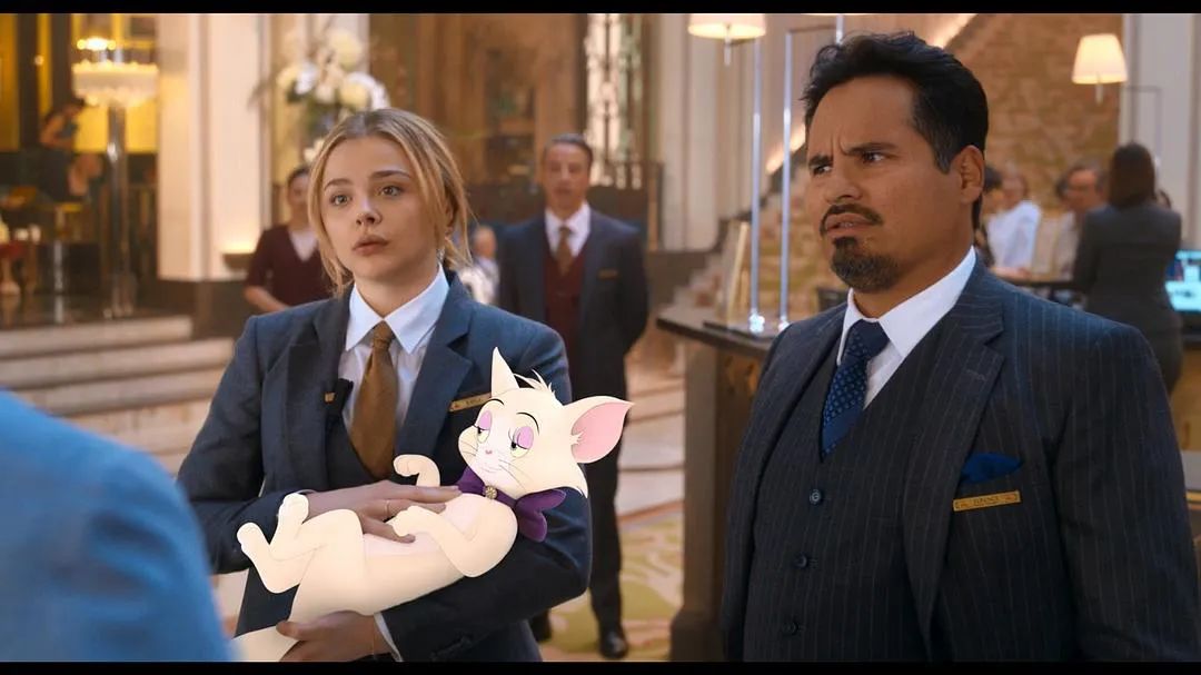 不知道片方是出于什么样的考量采用了这样的呈现方式,是为了维持原版的经典二维动画形象?还是说把猫和老鼠做成立体的烧脑又烧钱?反正最后的效果让我看着觉得特别别扭。两种完全不搭的画风被强行整合在一个画面里,违和感爆棚,别说追求美学风格了,就连基本的代入感都没有,让人完全无法进入到电影的世界里。