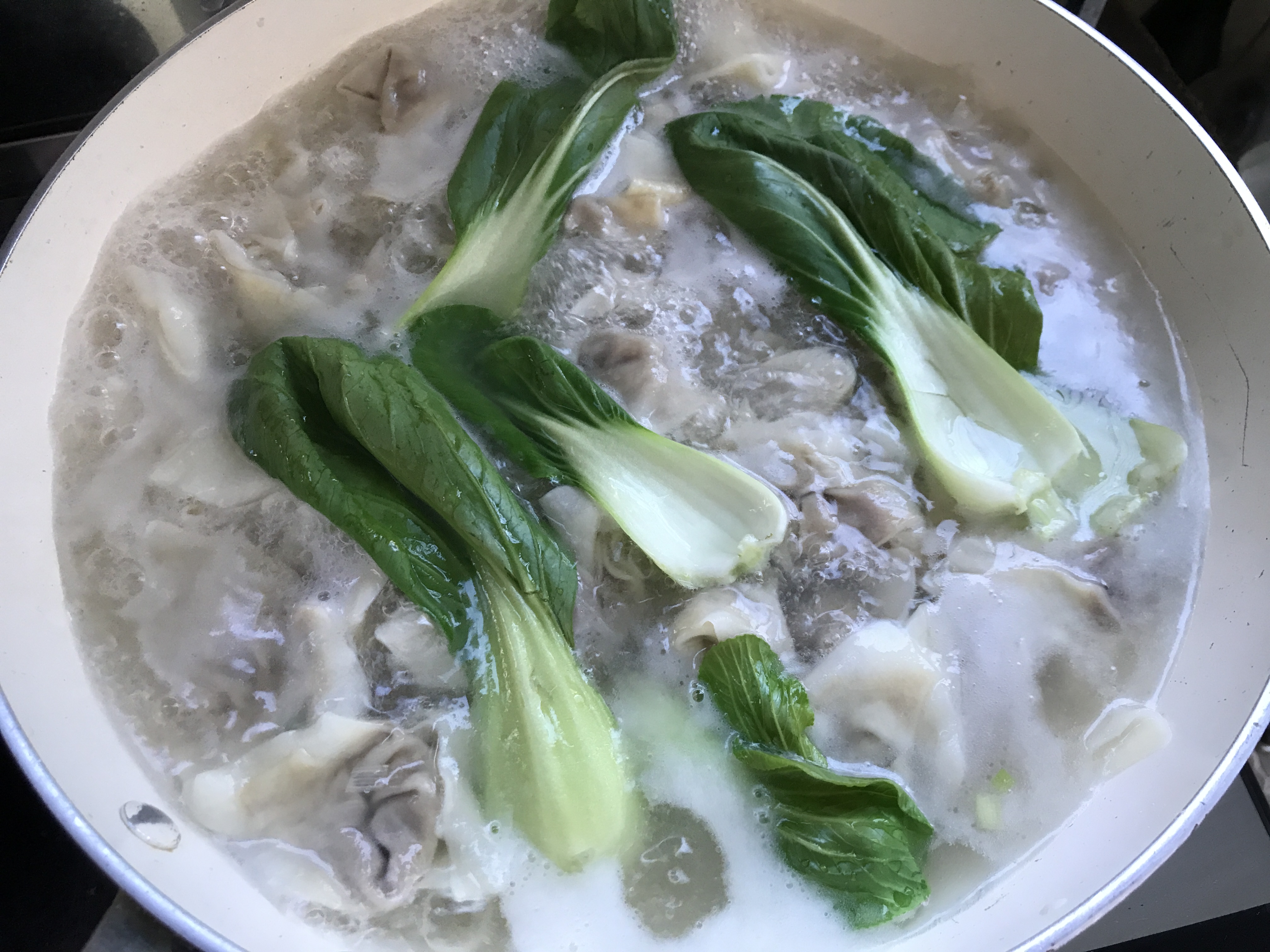 第十一步:锅中放入适量清水,大火烧开后放入馄饨煮开翻两个滚儿就好了。