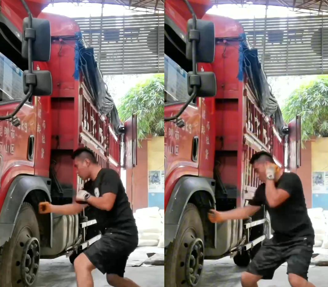 有时候跑车一忙起来,时间和空间不允许他打拳,他就会选择在卸货间隙打打轮胎。别人问起来,他就会笑着说“胎压太低,我给给轮胎打打气。” “谁叫自己真是喜欢这些呢,没有条件就创造条件,哪怕就练个十几分钟,也觉得舒坦。”
