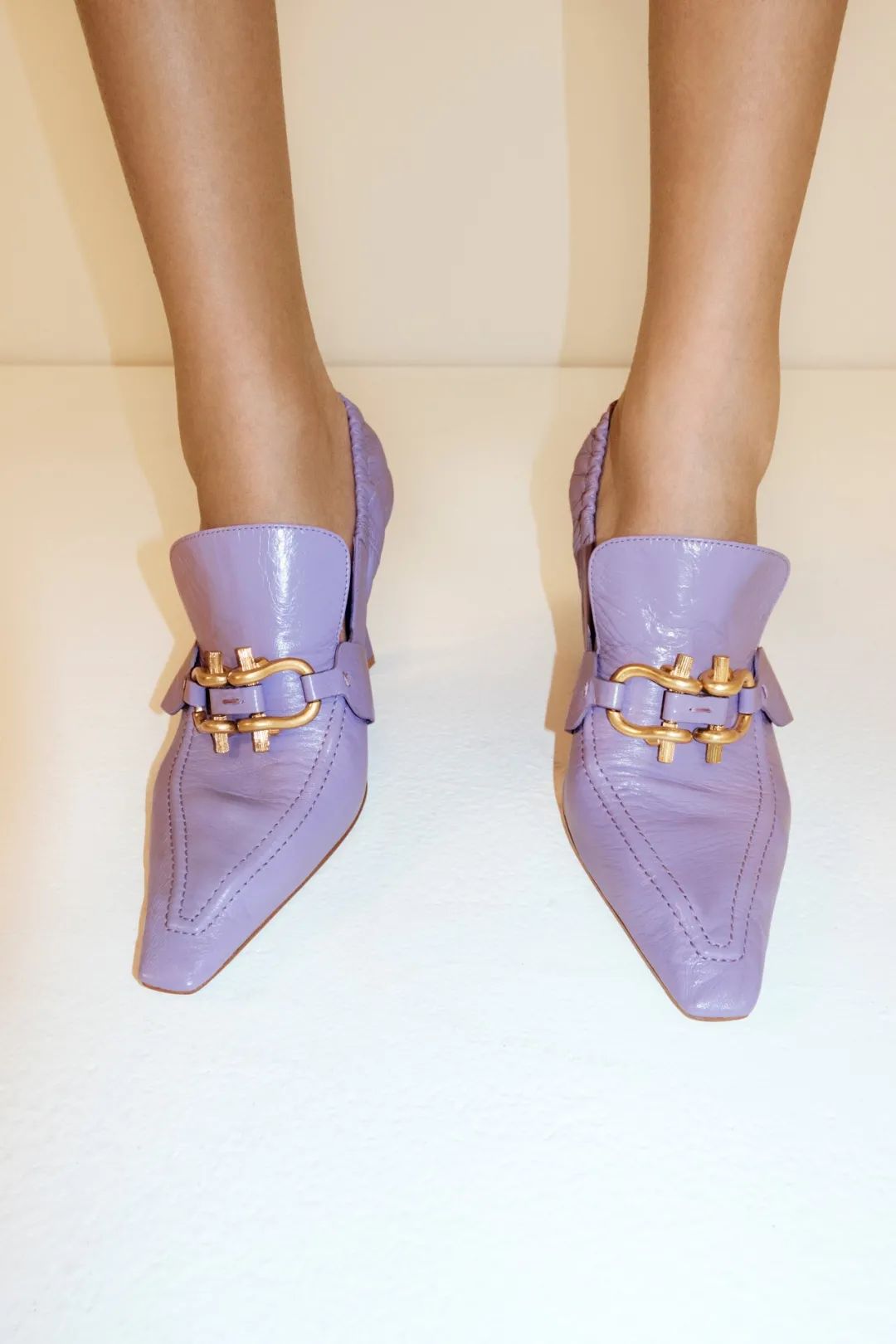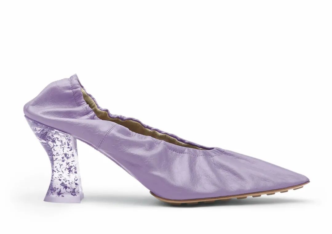 比如这双叫THE ALMOND的高跟鞋,透明的鞋跟里,就「封印」了和鞋身颜色一样的金属亮片。