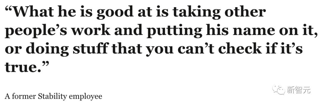 对此,一位Stability AI的前员工是这样评价Mostaque的:「他非常擅长拿来别人的作品,署上自己的名字,或者用来做一些无法验证真伪的事情。」