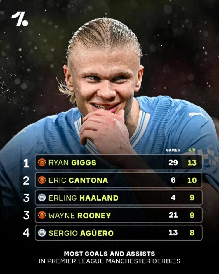 子承父业加盟曼城以后,小哈兰德只要一面对曼联,就有无穷的力量、极强的求胜欲 !此前在英超 4 次对阵曼联,小哈兰德打进 4 球并送出 3 次助攻!