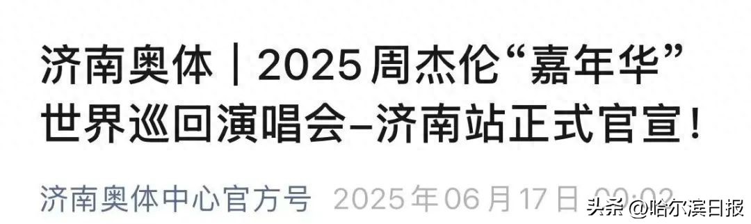 6月17日凌晨,济南奥体中心官方号发布文章,周杰伦“嘉年华”世界巡回演唱会济南站正式官宣!