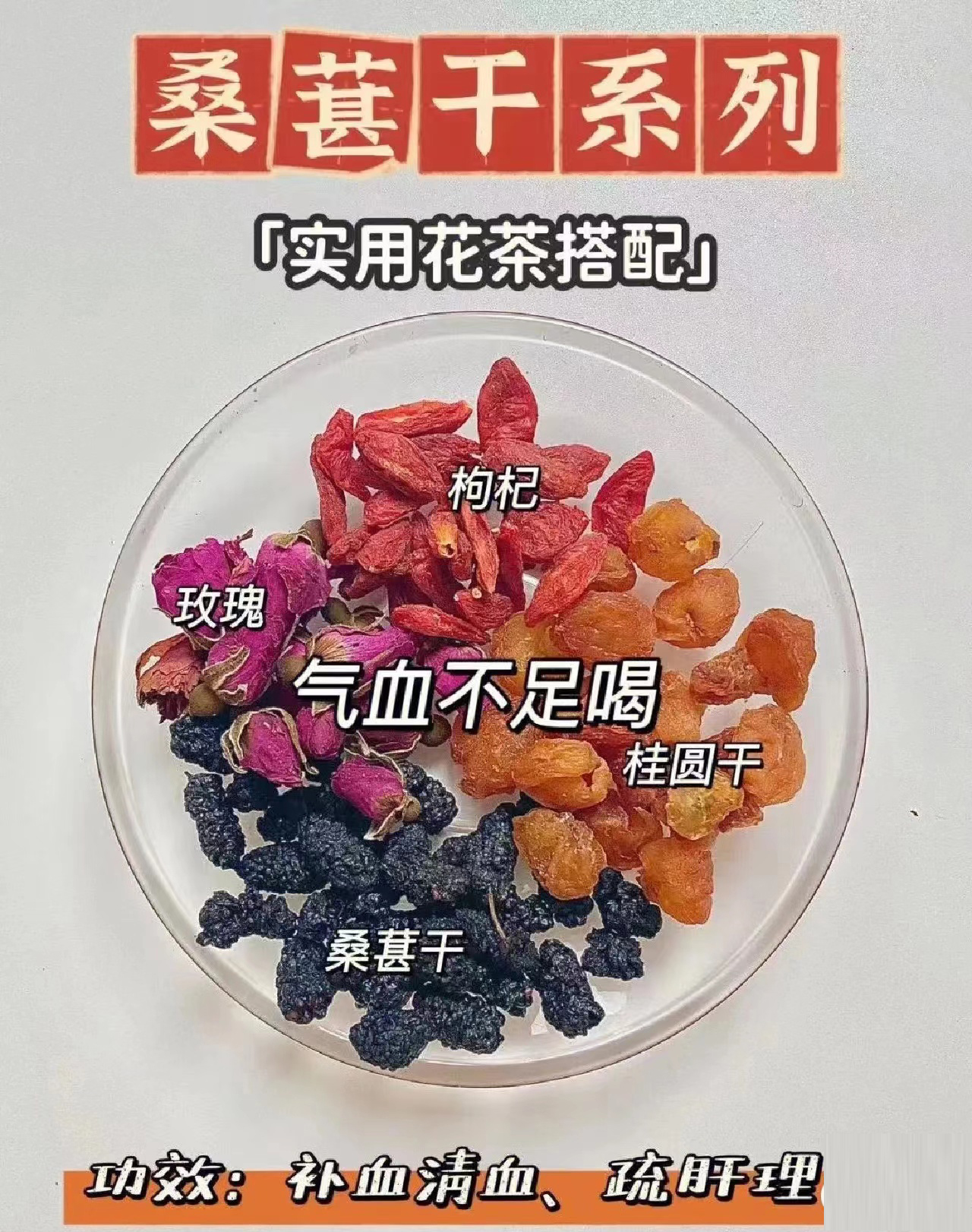 桑葚桂圆枸杞玫瑰茶 适合月经前后喝。
