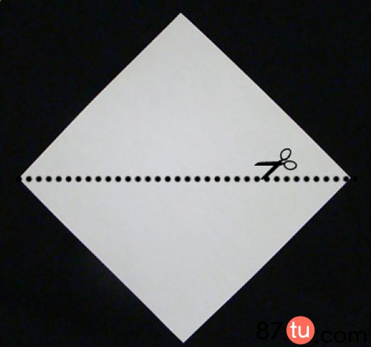 拿张正方形纸对齐折叠打开,在用剪刀剪开。