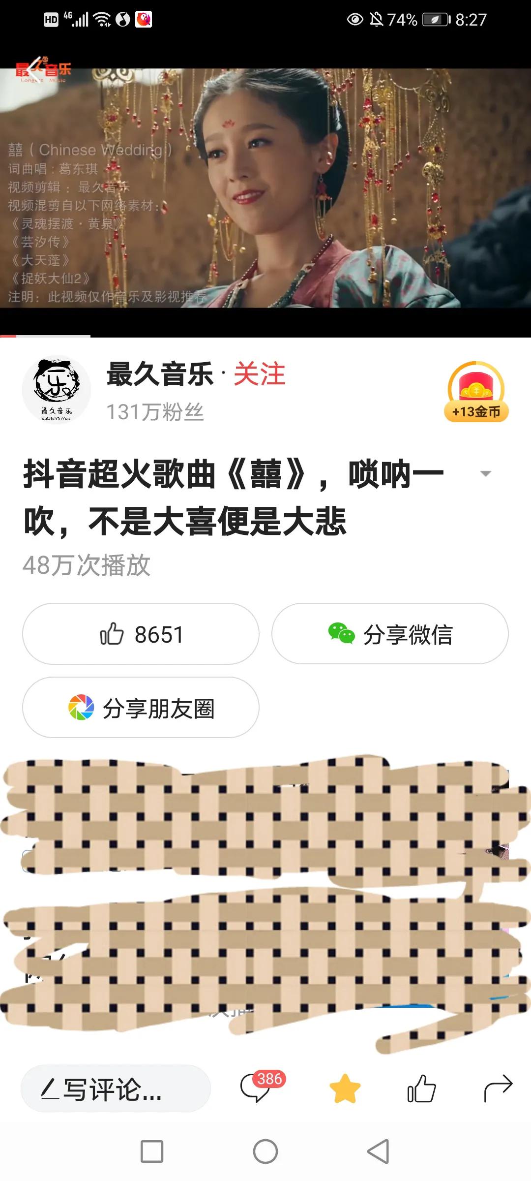 大家都知道,抖音上面有一首歌,叫做《囍》。也是很火的一首歌了大部分人应该都听过。没听过的自己看: