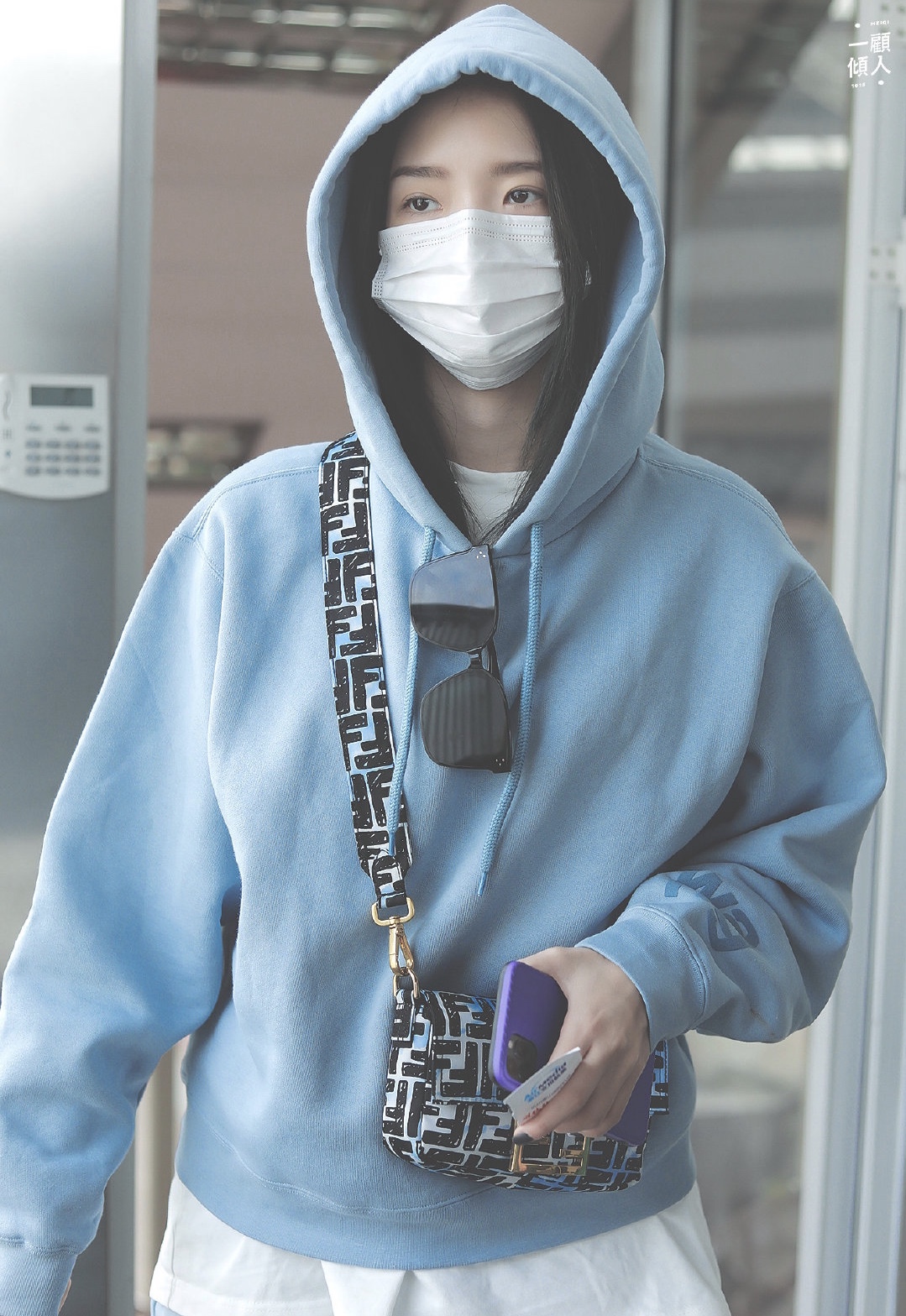 这次的机场穿搭,孟美岐选择的是非常时髦又休闲的look,我们可以看到上衣她采用的是叠穿的穿法,首先外面她搭配的是一件蓝色的连帽卫衣。蓝色的配色给人一种非常温柔气质的感觉,里面孟美岐选择的是一件白色的T恤,长款t恤露出下摆可以让整个上半身增加层次感,下装她搭配的是一条蓝色的牛仔裤,整个蓝色系的搭配比较时髦简单,如果不知道怎么穿的话,这种同色系的搭配是非常值得我们借鉴的。