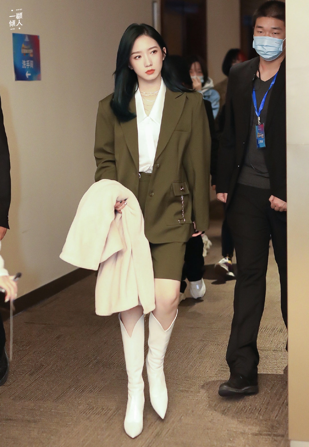 这一套机场穿搭将孟美岐的御姐,大佬范儿展现出来,我们可以看到她选择的是西装套装。复古感十足的咖色散发着浓浓的高街时髦范儿,首先上衣内搭部分,她选择的是一件白色的衬衫,少女感十足的衬衫给整个穿搭注入了甜美范儿,外面搭配的是稍显修身的西装,下装则穿的是西装短裤,将腿部线条露出来。鞋子这一天她穿的是一双白色的尖头中筒靴,给整个穿搭注入的酷感气息,孟美岐一头利落的中长发再配上气质的妆容,充满着女人味。