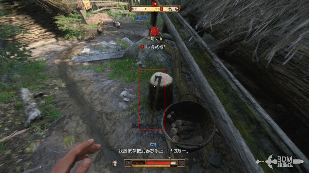 采药我们从对话中能知道就在房子后面,这条路直走就行,也可以看着界面正上方的指南针走。
