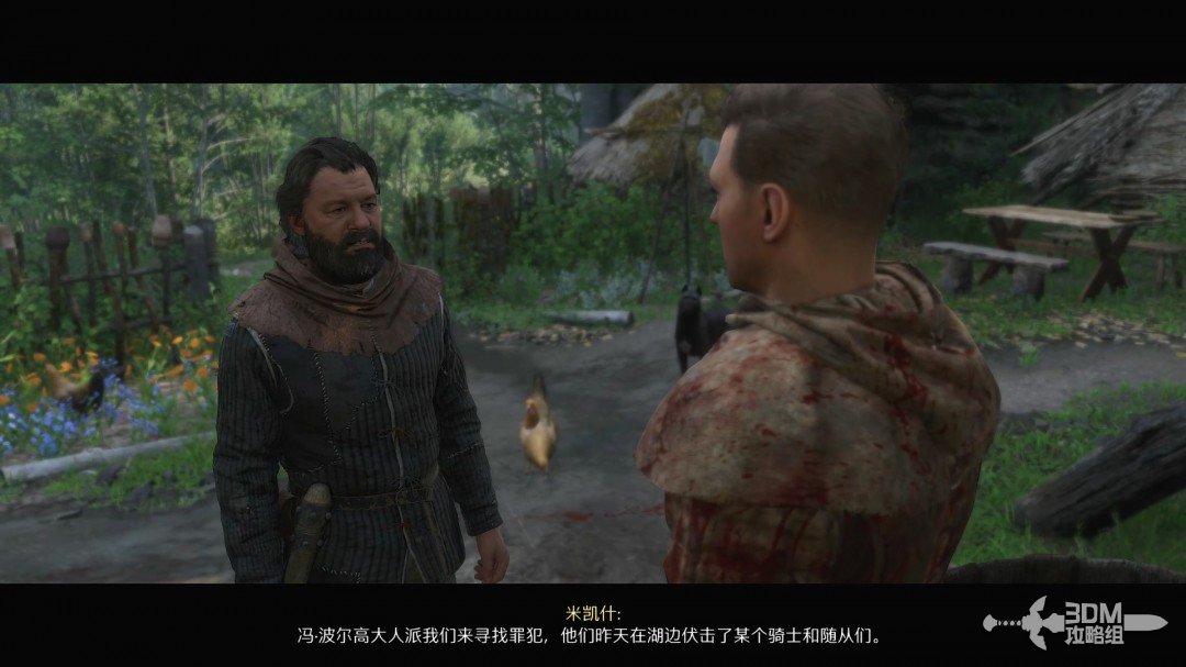 本作的主角亨利出场,给我们交代了一下他们原本的任务,给奥托·冯·波尔高大人送信,亨利是卡蓬的护卫。