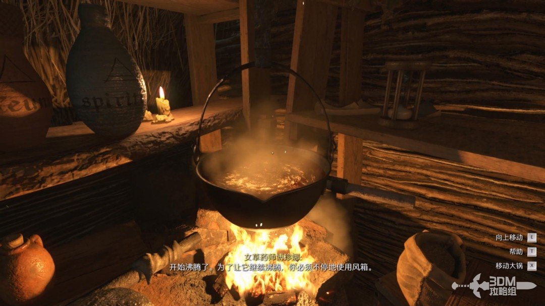 加入后不需要再次熬煮了,我们看锅的左边,葡萄酒的下一排,按E选择药瓶。
