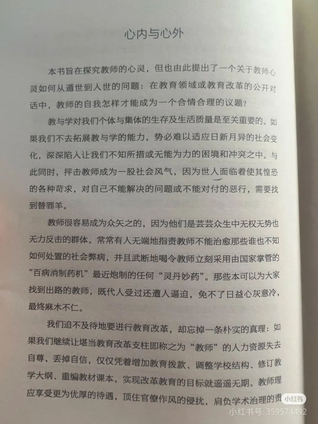 书中还提到了教师与学生的关系。帕尔默认为,教师不仅是知识的传授者,更是学生心灵的引路人。这需要教师真正地关心每一个学生,了解他们的需求、梦想和困惑,为他们提供一个安全、支持的学习环境。在这样的环境中,学生不仅可以学到知识,更可以学会如何成为一个有品格、有责任感的人。