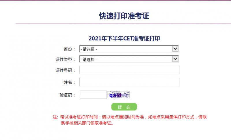 四级准考证打印入口官网:全国大学英语四六级快速打印准考证系统